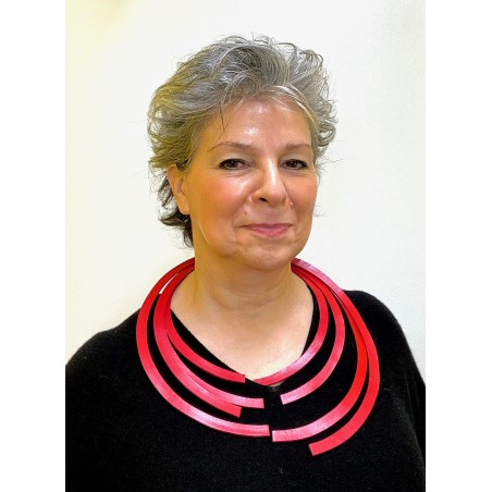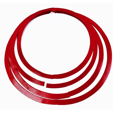 For the most contemporary women out there, 4 double-sided leather bands, open in the front, that wrap perfectly around the neck.