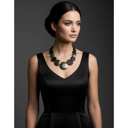 Stunning short necklace (20") made of large double-sided coins, cut by hand from exceptionally high-quality leather.