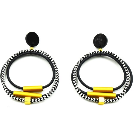 Three cord loops w/ brushed aluminum tubes. Approximately 3" wide