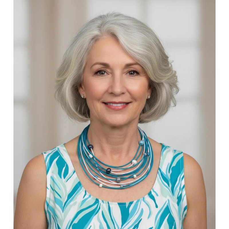 Bright, feminine, and effortlessly airy, this multi‑strand necklace is crafted from ultra‑light colored cords that create soft movement and beautiful layered texture. Each strand is spiced with smooth ceramic ball accents, adding subtle dimension and a touch of artistic charm without ever feeling heavy.