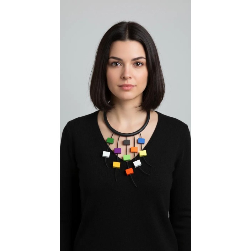 Make a bold modern statement with this striking necklace featuring a waterfall of anodized‑aluminum cubes that appear to float effortlessly along soft rubber strings. The cascading cubes create dynamic movement and eye‑catching dimension, showcasing the rich, velvety colors and lightweight feel of anodized aluminum.
