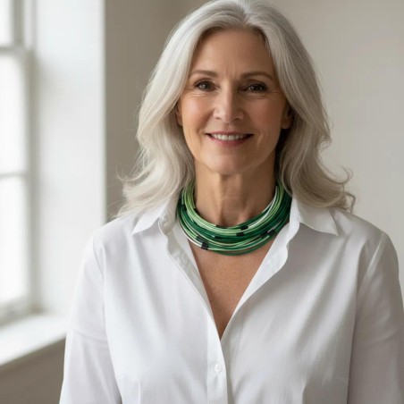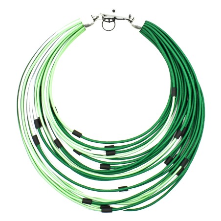 When simplicity steals the show: this multicolored necklace, slightly adjustable from 20 to 24" around the neck, will dress up any outfit.