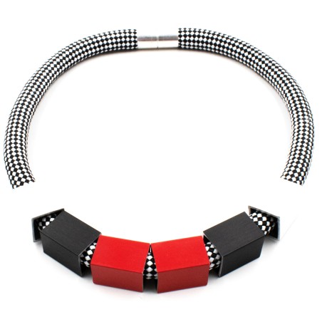 One of the most beloved designs in Christina’s collection, this iconic necklace features five richly anodized aluminum cubes in vibrant, scrumptious colors. Each cube is paired with a soft, color‑coordinated cord that enhances the necklace’s simple, chic, and effortlessly modern look.
