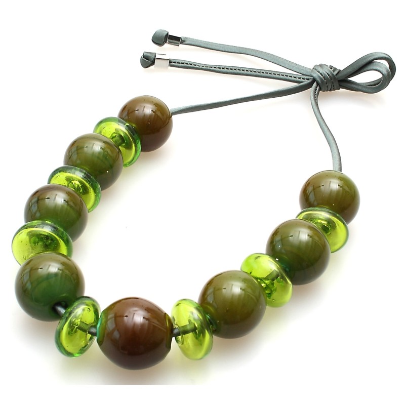 20" adjustable necklace made with scrumptious Murano glass balls and coins and a satin cord.