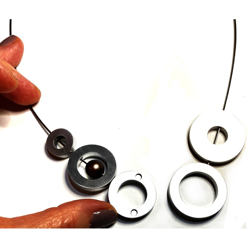 High-quality brushed aluminum necklace with an invisible magnetic closure upfront - handmade in the Netherlands.