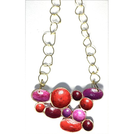 A dainty pendant made of bronze dusted in gold and hand-painted with colored pigments and delivered with a chain with large links. Available in 5 colors.