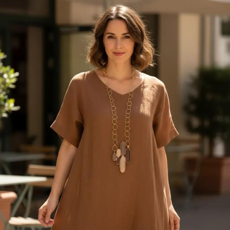 A long pendant with a 5" long x 3 1/2" wide grape of 6 curved, elongated bronze ovals, hand-painted with special pigments.