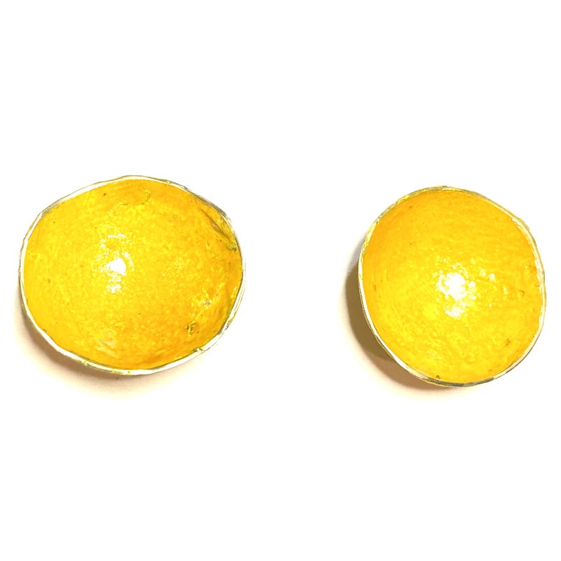 These small bronze pod post earrings by Dora Haralambaki bring a subtle pop of color to everyday style. Sculpted in a modern pod shape and feather‑light on the ear, they feature a thin layer of gold beneath Dora’s signature hand‑mixed pigments, brushed on to create rich, luminous color. Discreet yet expressive, they are designed to let the color take center stage—perfect for effortless, artistic elegance.