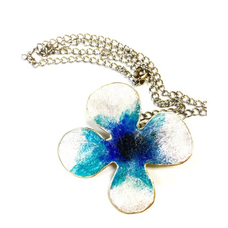 Dainty pendant, dusted in gold and hand-painted with colored pigments, with a 22" silverplated bronze chain.