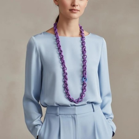 Long, 30" rubber chain necklace with Murano glass rings accent - handmade in Italy by Klamir. The model shortened it in the back for the picture.