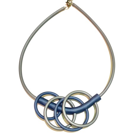 18" necklace w/ interlocking rubber rings.