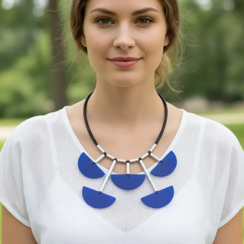 A dramatic 20" necklace with aluminum sticks and plexi elements.