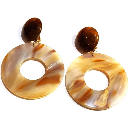 The epitome of summer style, these very large 2.8" clip earrings are crafted from a high‑end acrylic polymer in a soft latte shade. The surface has a refined, marble‑like texture that gives the earrings a luxurious, sculptural presence while keeping the look fresh and modern.