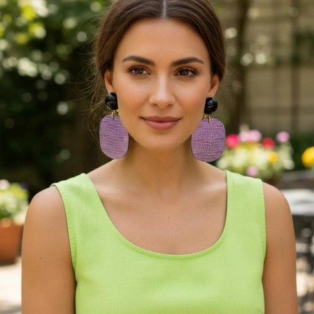 Another standout design in this series, these clip earrings feature an exceptional acrylic with a galuchat‑like surface, giving the material a subtle, pebbled richness. Here, the effect is paired with a more geometric silhouette, creating a modern, architectural look that feels fresh and sophisticated.