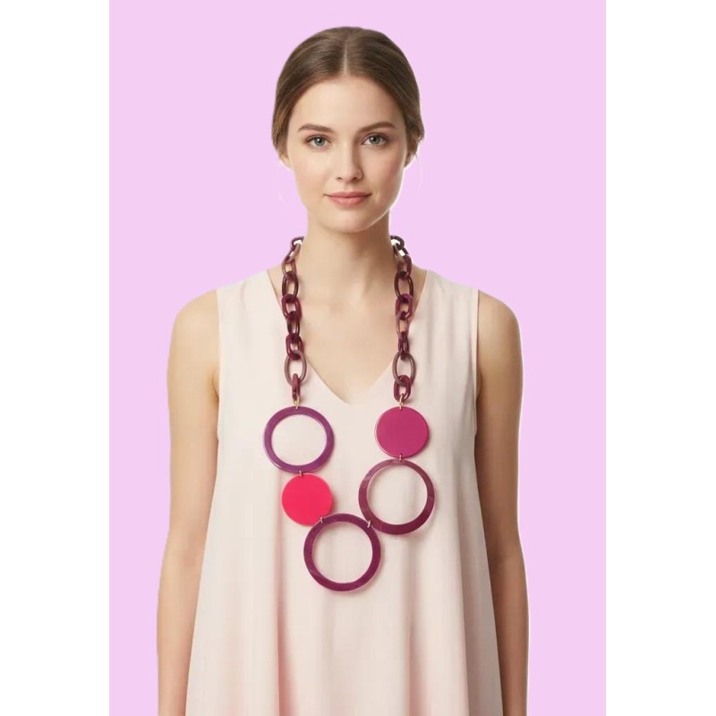 This long link necklace channels the bold, joyful energy of 70s pop culture, reimagined in a modern, high‑end material. Crafted from luxurious Italian acrylic, it features vivid, contrasting colors that feel instantly dynamic and full of personality. The acrylic is dense yet surprisingly light, giving the necklace a substantial, statement‑making presence without ever weighing you down.