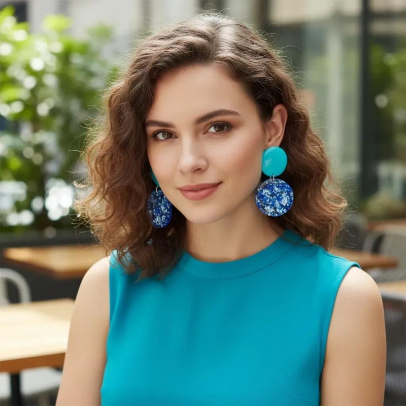 The material used for these clip earrings is truly captivating: a crystal‑clear acrylic infused with delicate specks of silver foil that appear to float inside the form. The result is a cool, luminous effect—light‑catching, modern, and effortlessly chic.