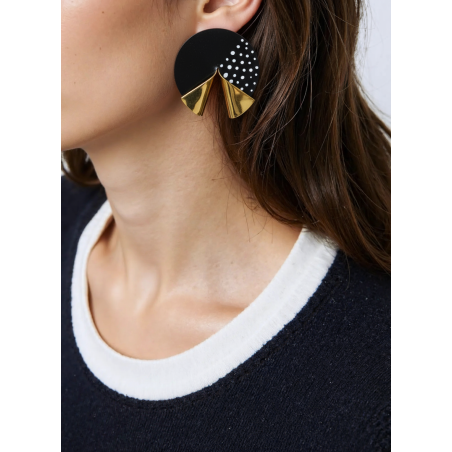 Large post Bronze earrings, folded by hand, plated with Rhodium, then with gold. With black pigment.