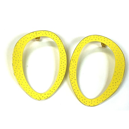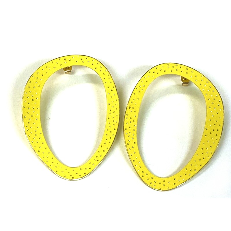 Bronze post earrings, 2 1/4 inch long, dyed by hand with blue pigments