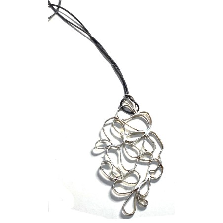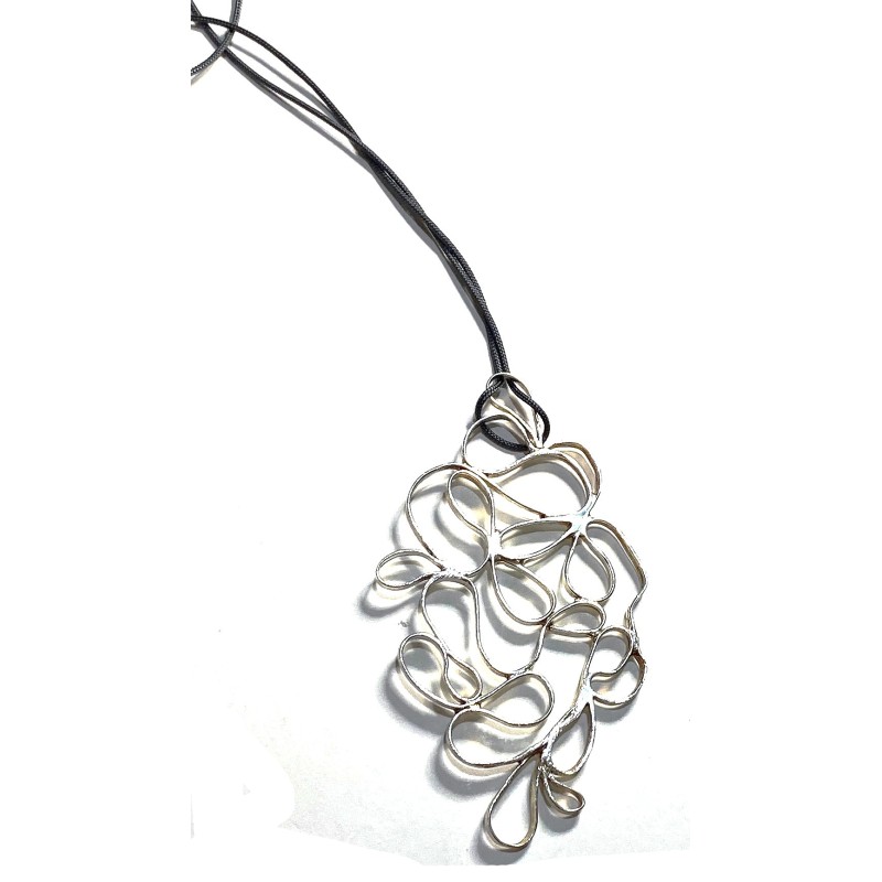 Bronze pendant, galvanized with rhodium and plated in SILVER. On 32" long cord.