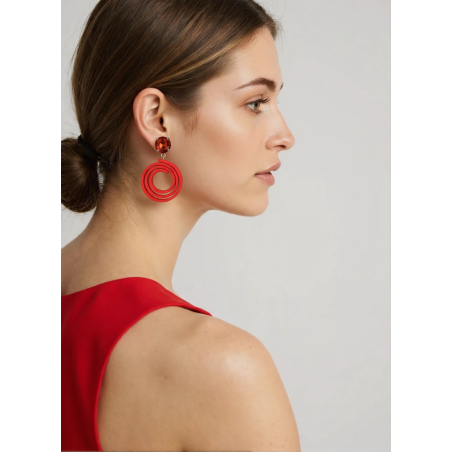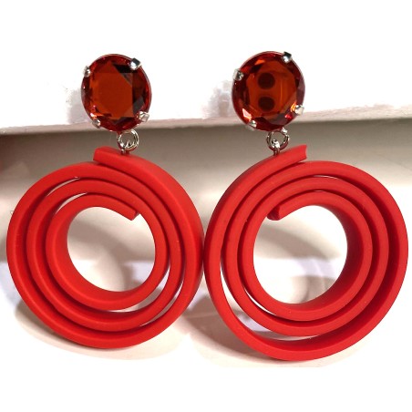 Sophisticated hoop earrings, approx. 1.8" long with thinly cut rubber, and Swarovski post