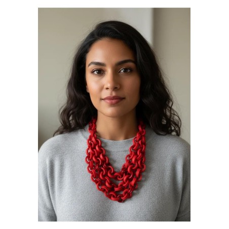 A long waterfall of rubber links, cut and stitched by hand and spiced up with Murano glass rings.