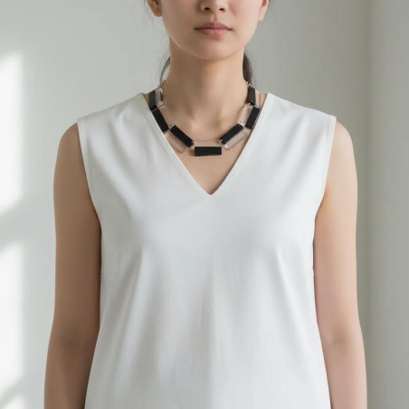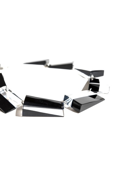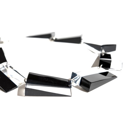 A sophisticated Lucite 2-tone creation using thin rectangular segments that lay perfectly flat around the neck.