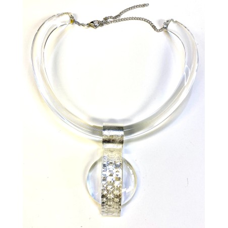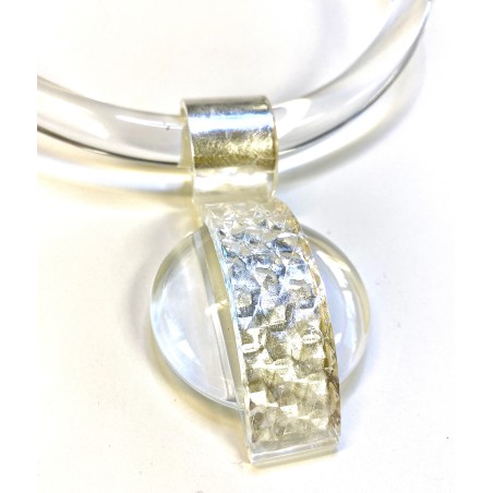 A transparent Lucite pendant enhanced with a silver foil inlay