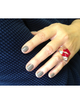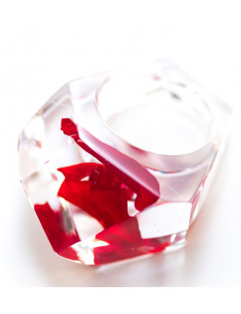 Handcarved Lucite ring with facettes and real rose petal inclusion