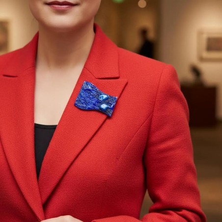 Inspired by the visionary blue of Yves Klein, this contemporary Lucite brooch evokes the look of richly built‑up paint material rising from the surface in a bold, modern way. The Lucite is hand‑carved and sculpted to create intense color saturation and textured dimensionality, echoing Klein’s iconic monochrome depth while transforming it into a luminous, wearable form. The piece radiates energy through its vivid blue tones and tactile surface, making it a striking example of art‑inspired Lucite jewelry, modernist statement brooches, and color‑driven contemporary adornment.