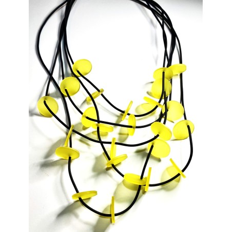 18/20" A waterfall of soft rubber cord with magnetic closure, adorned with soft hand-cut translucent rubber circles.