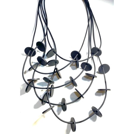 18/20" A waterfall of soft rubber cord with magnetic closure, adorned with soft hand-cut translucent rubber circles.