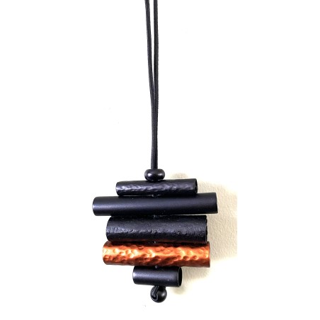 Multiple tubes in contrasting hues come together to create a striking composition of color and rhythm, making the necklace a true statement piece. Mounted on a versatile cord, it can be worn close to the face for a dramatic focal point or extended up to 30" to flow effortlessly with a more fluid silhouette.
