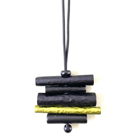 Multiple tubes in contrasting hues come together to create a striking composition of color and rhythm, making the necklace a true statement piece. Mounted on a versatile cord, it can be worn close to the face for a dramatic focal point or extended up to 30" to flow effortlessly with a more fluid silhouette.