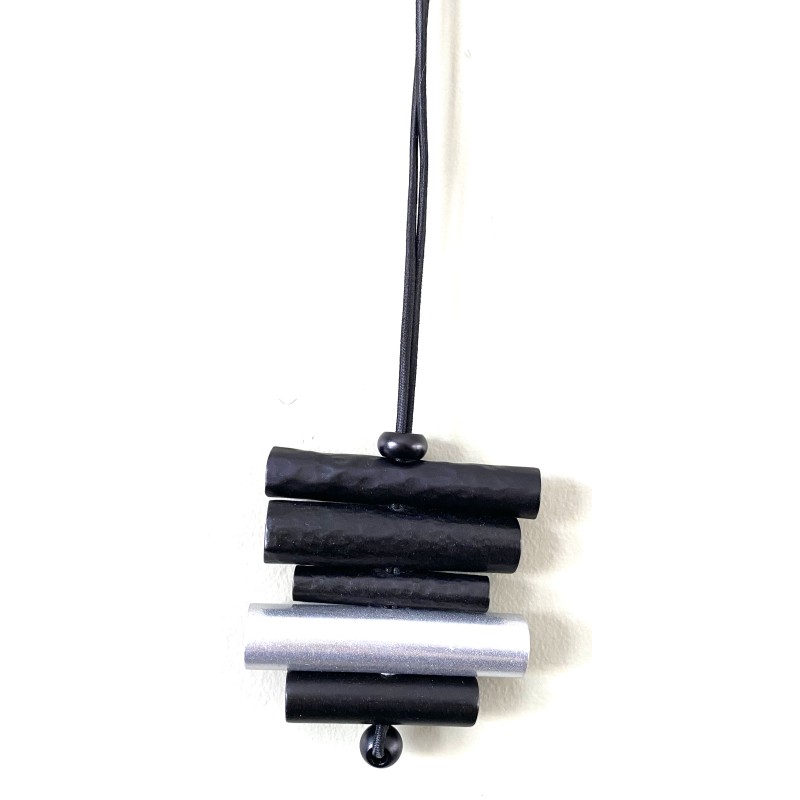Each tube begins as a simple sheet of aluminum, transformed through hand‑hammering into a textured surface that catches the light with subtle movement. Thick, saturated pigments are applied in bold, expressive colors, turning every piece into a vibrant stroke of wearable art. The metal is then shaped seamlessly into a smooth, continuous tube—no joins, no edges, just pure sculptural form.