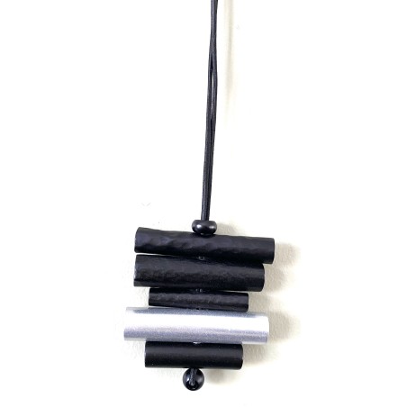 Multiple tubes in contrasting hues come together to create a striking composition of color and rhythm, making the necklace a true statement piece. Mounted on a versatile cord, it can be worn close to the face for a dramatic focal point or extended up to 30" to flow effortlessly with a more fluid silhouette.