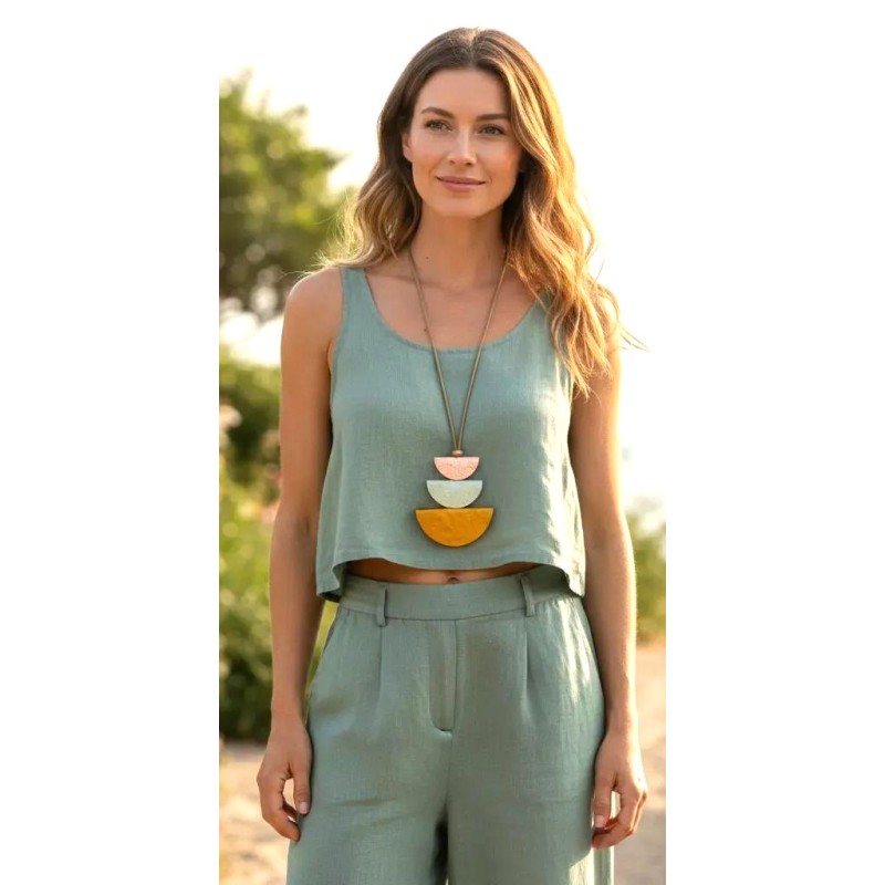 Their layered arcs create a play of light and shadow, giving the pendant a sense of movement even at rest. Suspended from a smooth, adjustable cord that shifts effortlessly from 20" to 30", the piece adapts to your style and silhouette.