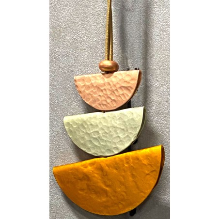 Three hand‑hammered aluminum half‑moons come together in a sculptural rhythm, each one shaped and folded with quiet intention.