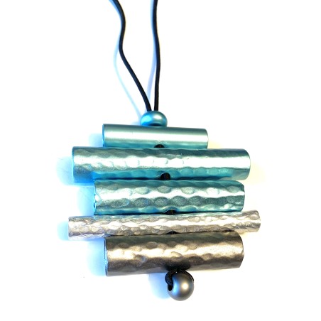 Each tube begins as a simple sheet of aluminum, transformed through hand‑hammering into a textured surface that catches the light with subtle movement. Thick, saturated pigments are applied in bold, expressive colors, turning every piece into a vibrant stroke of wearable art. The metal is then shaped seamlessly into a smooth, continuous tube—no joins, no edges, just pure sculptural form.