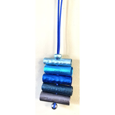 Using the same hand‑crafted tube system, this pendant takes on a new presence when each tube is cut to identical dimensions. The uniformity gives the piece a clean, architectural strength—an intentional rhythm that becomes even more striking with the crescendo of dense, layered colors. Each tube carries its own bold pigment, and together they build a vibrant progression that feels both deliberate and dynamic.