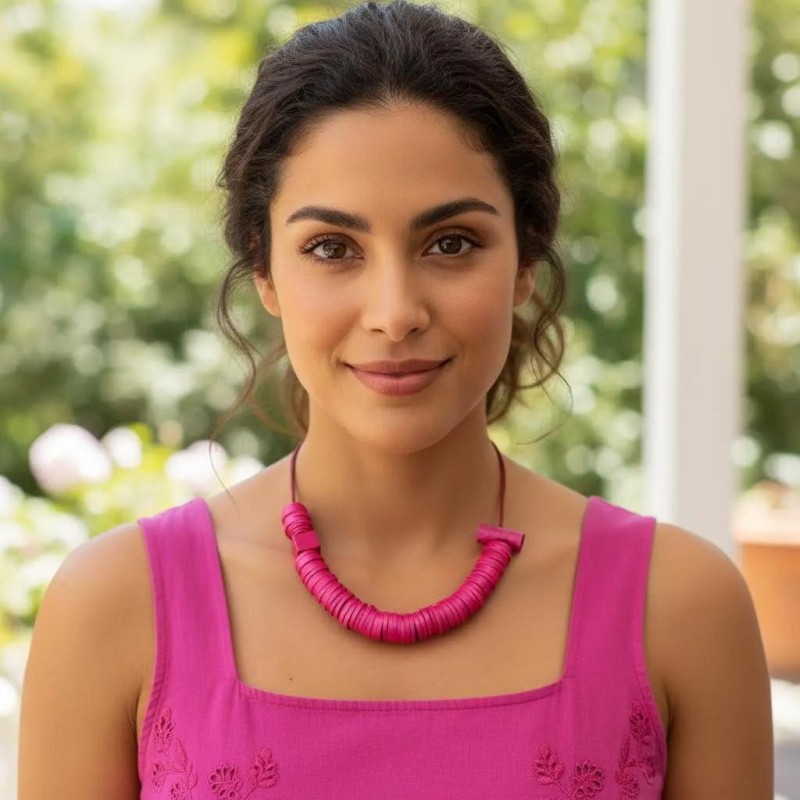 The saturated color amplifies the sculptural shapes, turning the pendant into a powerful statement that feels both modern and unmistakably Monica.