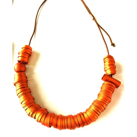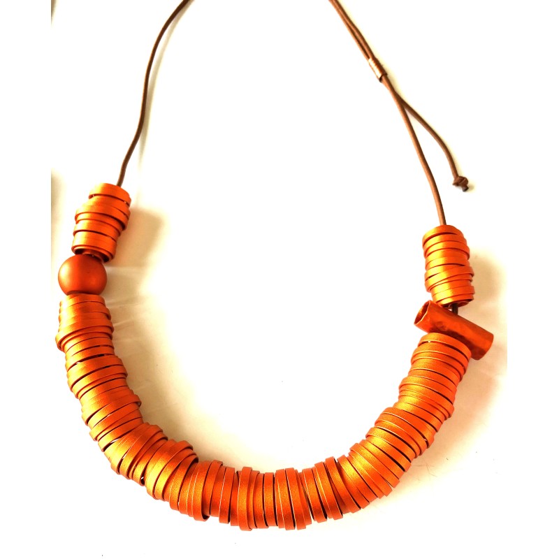 This piece stands among Monica’s most industrial‑inspired designs, built from a long, thick‑cut aluminum ribbon that twists like a spring around an adjustable cord. Its bold, architectural coil is accompanied by two contrasting elements: a seamless tube with subtle texture on one side, and a small, smooth‑surfaced cube on the other. The interplay of forms—spiral, tube, cube—creates a striking balance of movement and precision.