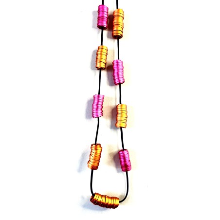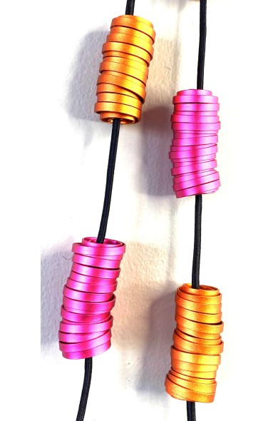 This design celebrates the allure of delicately sculpted aluminum ribbons—thin, dense, and utterly sumptuous. Each ribbon is anodized using an exclusive technique that transforms rich pigments into a finish with the softness and sheen of silk. The result is a surface that feels almost velvet‑touched, catching the light with an airy, weightless elegance.