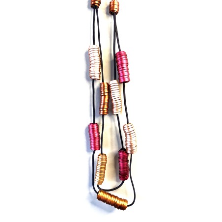 This design celebrates the allure of delicately sculpted aluminum ribbons—thin, dense, and utterly sumptuous. Each ribbon is anodized using an exclusive technique that transforms rich pigments into a finish with the softness and sheen of silk. The result is a surface that feels almost velvet‑touched, catching the light with an airy, weightless elegance.