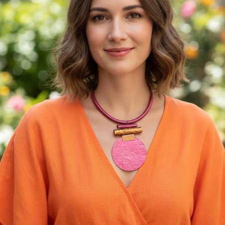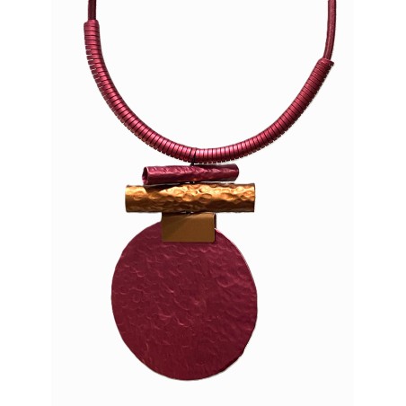 Indulge in a piece where artistry and elegance meet. This sculptural necklace brings together elongated tubes and generous disks, each one meticulously hand‑hammered and shaped to create a composition that feels both fluid and architectural. Delicate rings introduce a whisper of movement, enriching the silhouette with subtle dimension.