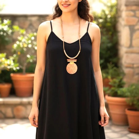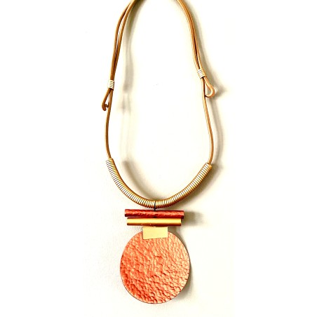 Indulge in a piece where artistry and elegance meet. This sculptural necklace brings together elongated tubes and generous disks, each one meticulously hand‑hammered and shaped to create a composition that feels both fluid and architectural. Delicate rings introduce a whisper of movement, enriching the silhouette with subtle dimension.