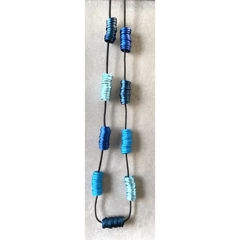 This design celebrates the allure of delicately sculpted aluminum ribbons—thin, dense, and utterly sumptuous. Each ribbon is anodized using an exclusive technique that transforms rich pigments into a finish with the softness and sheen of silk. The result is a surface that feels almost velvet‑touched, catching the light with an airy, weightless elegance.