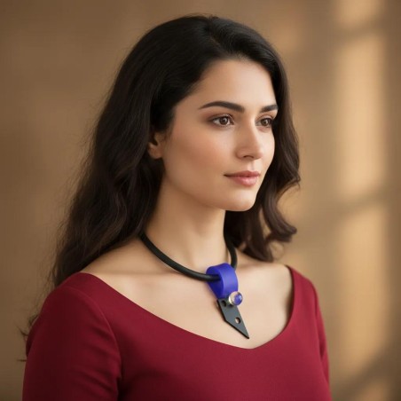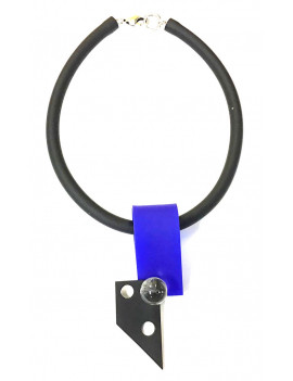 18" necklace w/ a thick rubber cord & a flat rubber loop, rubber & glass bead pendant. Adjustable closure.