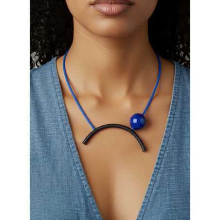 Asymmetric Japanese inspired necklace w/ thick rubber base, Murano glass ball & slim rubber cord & adjustable closure.