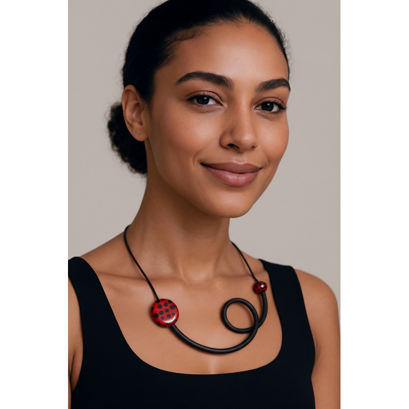 18" rubber necklace w/ Flat oval & mini spot Murano beads made exclusively for Samuel Coraux in Venice Italy