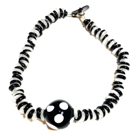 18" necklace w/ graphic rubber/Murano glass pendant.  Slim rubber cord w/ adjustable closure.